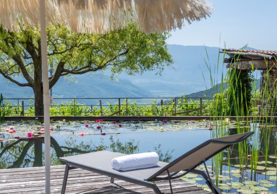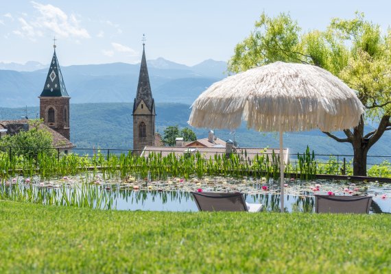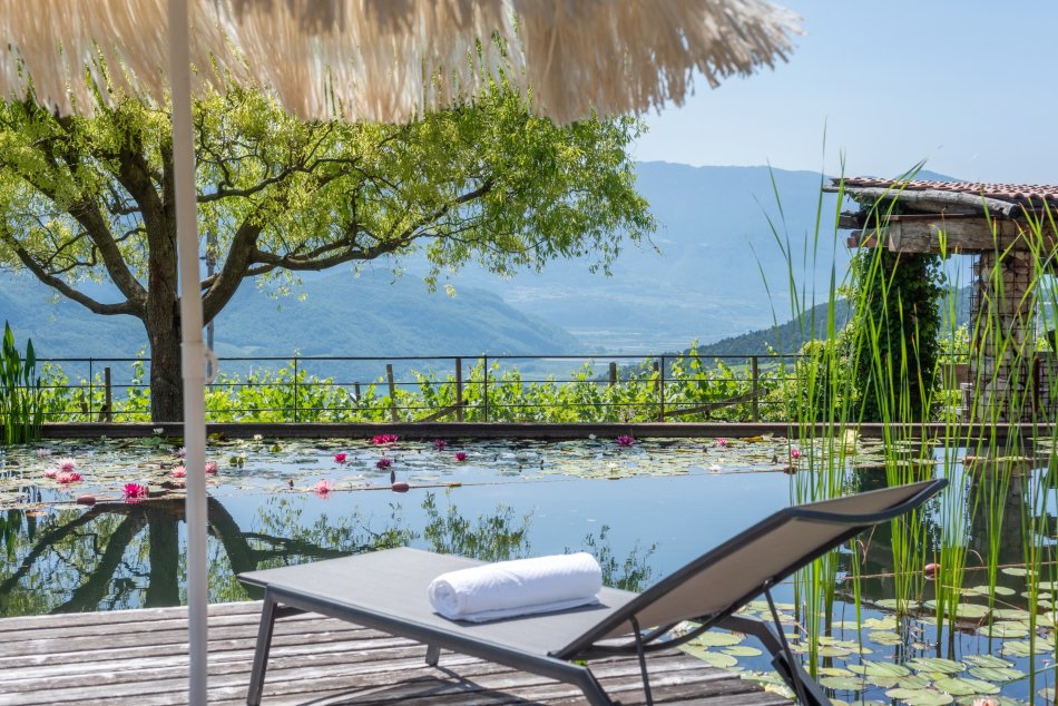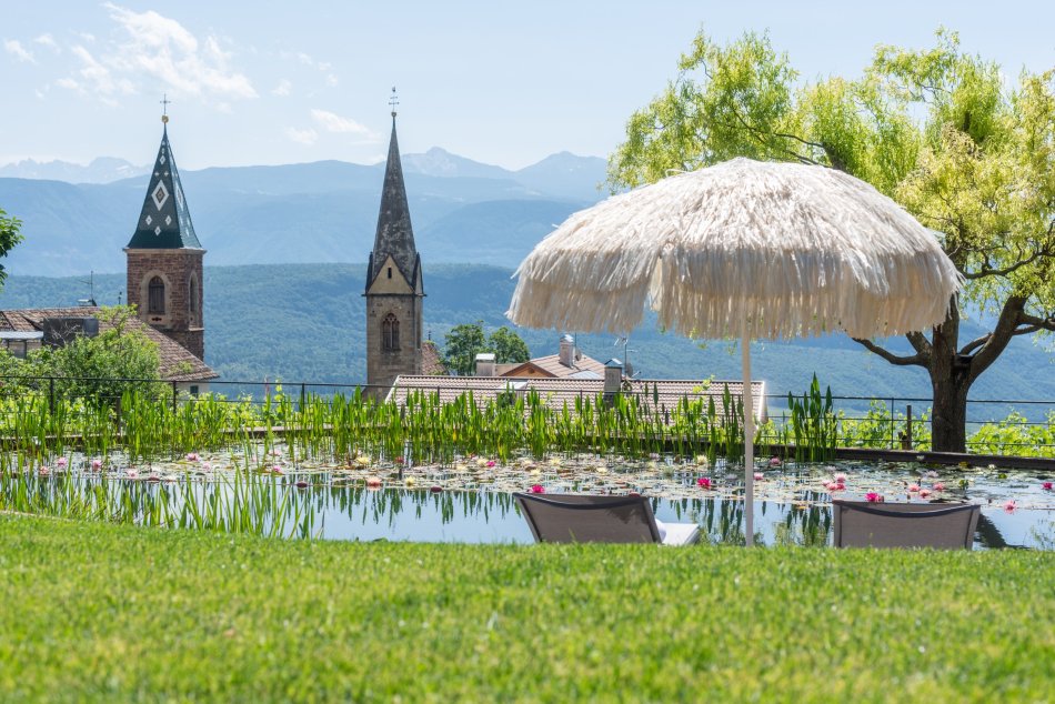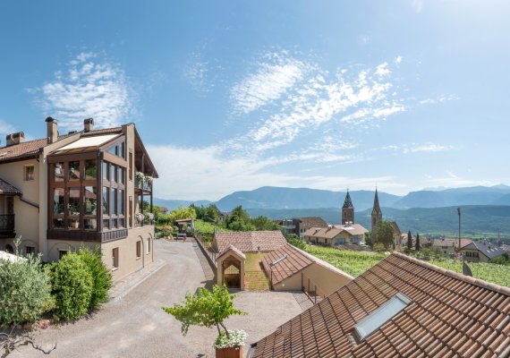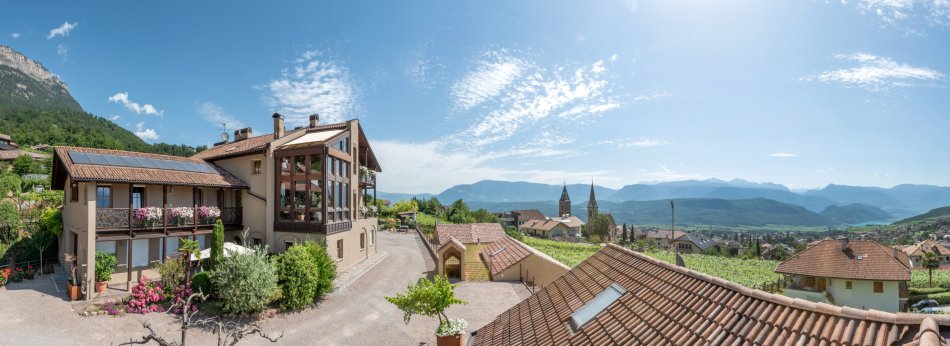 Inmitten einer traumhaften Reblandschaft liegt unser Weinhof in einer sonnigen und ruhigen Panoramalage, mit herrlichem Rundblick in die Dolomiten und zum Kalterer See sowie auf den Hausberg, dem Mendelgebirge.