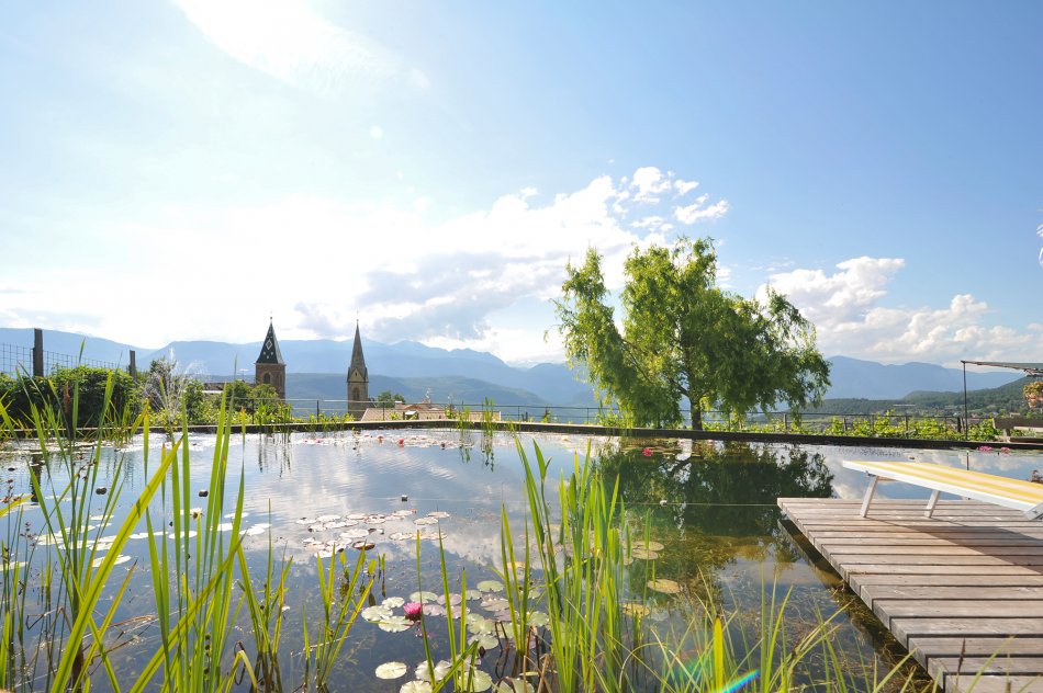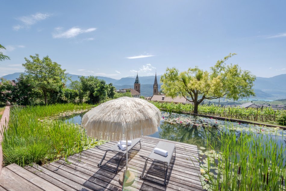 Inmitten einer traumhaften Reblandschaft liegt unser Weinhof in einer sonnigen und ruhigen Panoramalage, mit herrlichem Rundblick in die Dolomiten und zum Kalterer See sowie auf den Hausberg, dem Mendelgebirge.